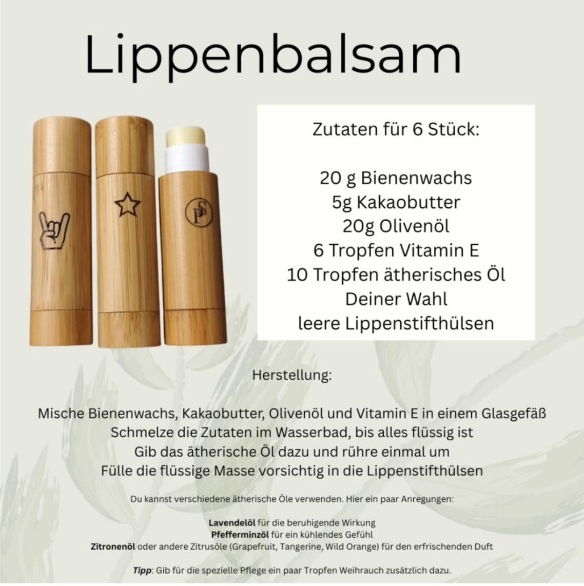 Dieser selbstgemachte Lippenbalsam ist echtes Verwöhnprogramm für trockene Lippen. Bienenwachs schützt, Kakaobutter und Olivenöl pflegen intensiv, und Vitamin E sorgt für extra Feuchtigkeit und Schutz. Verfeinert mit einem Tropfen deiner liebsten Doterra-Öle – für duftende, weiche Lippen, ganz ohne künstliche Zusätze. Einfach, natürlich, gut.
